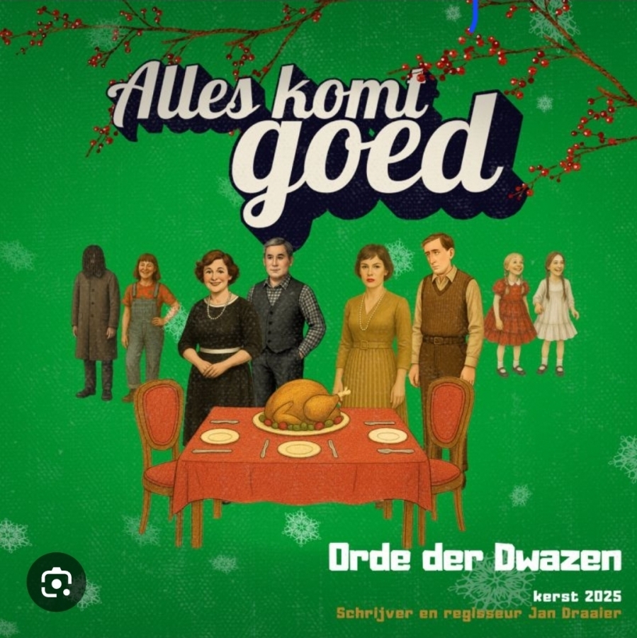 | Aanvullende info: | Kerstvoorstelling: 'Alles komt goed' In het hartverwarmende en humoristische kersttoneelstuk Alles komt goed volgen we Chantal, die op kerstavond haar zorgvuldig geplande diner in rook ziet opgaan. Letterlijk. Wat volgt is een chaotisch, grappig en ontroerend avontuur in het buurtcentrum, waar onverwachte ontmoetingen, misverstanden en een mysterieuze gast langzaam de ware betekenis van kerst onthullen. Met kleurrijke personages, scherpe dialogen en een vleugje magie is dit stuk een feest voor jong én oud. Kinderen zullen genieten van de vrolijke scènes met buurtkinderen, terwijl volwassenen geraakt worden door de diepere lagen over familie, verwachtingen en vergeving. Een voorstelling vol vaart, humor en hoop |